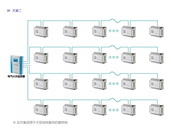 該系統(tǒng)由電氣火災(zāi)監(jiān)控設(shè)備、探測器和傳感器組成。系統(tǒng)通過探測器對消防設(shè)備的用電線路進行實時監(jiān)控,再由通訊總線上傳至電氣火災(zāi)監(jiān)控設(shè)備,通過監(jiān)控設(shè)備顯示所監(jiān)控設(shè)備的實時狀態(tài),探測器主要監(jiān)測設(shè)備供電的漏電流和溫度等信息,從而判斷設(shè)備是否存在漏電、發(fā)熱嚴(yán)重等異常情況并及時報警、記錄。